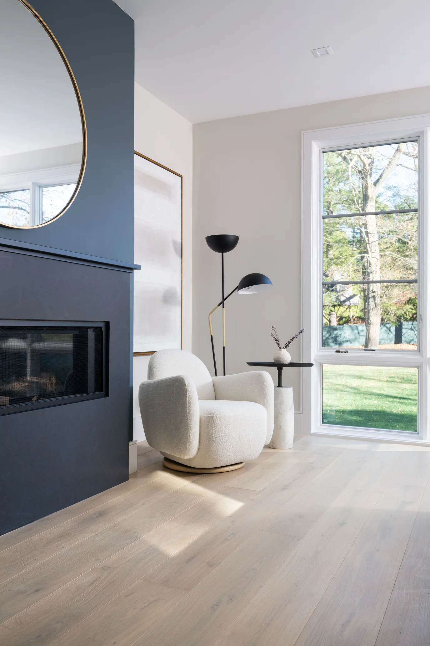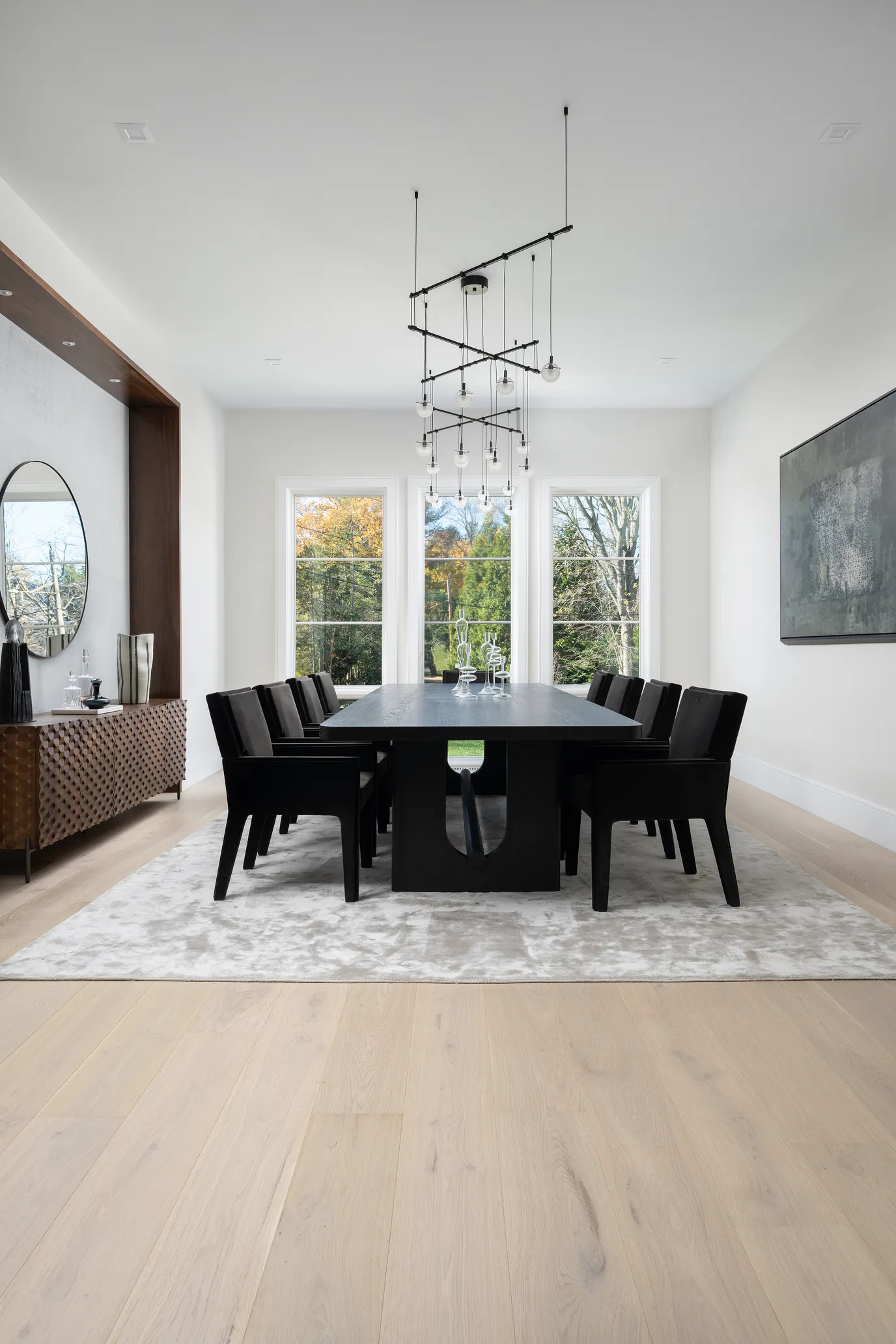 Our wood floors in Smoke color, shown in Select grade (knot-free) and Character grade (with natural knots), reflect the heart of who we are.